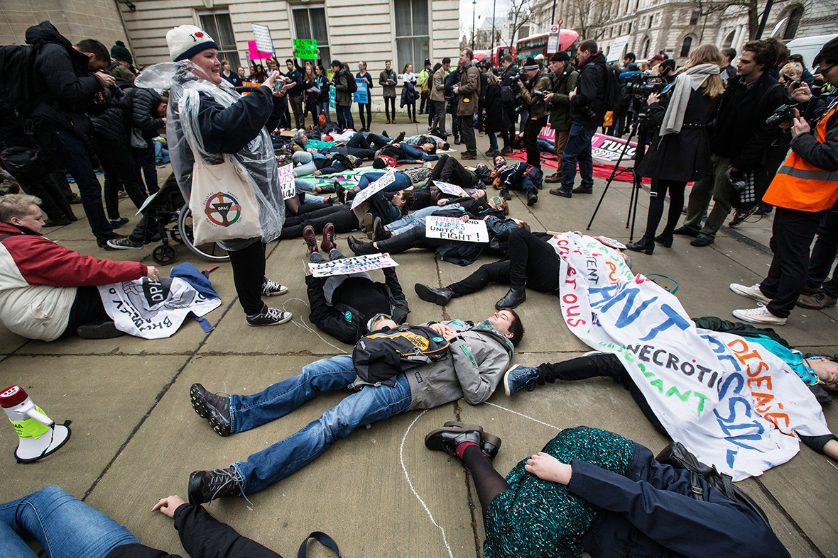 Junior doctors and protesters stage a die-in outside the Department of Health in London