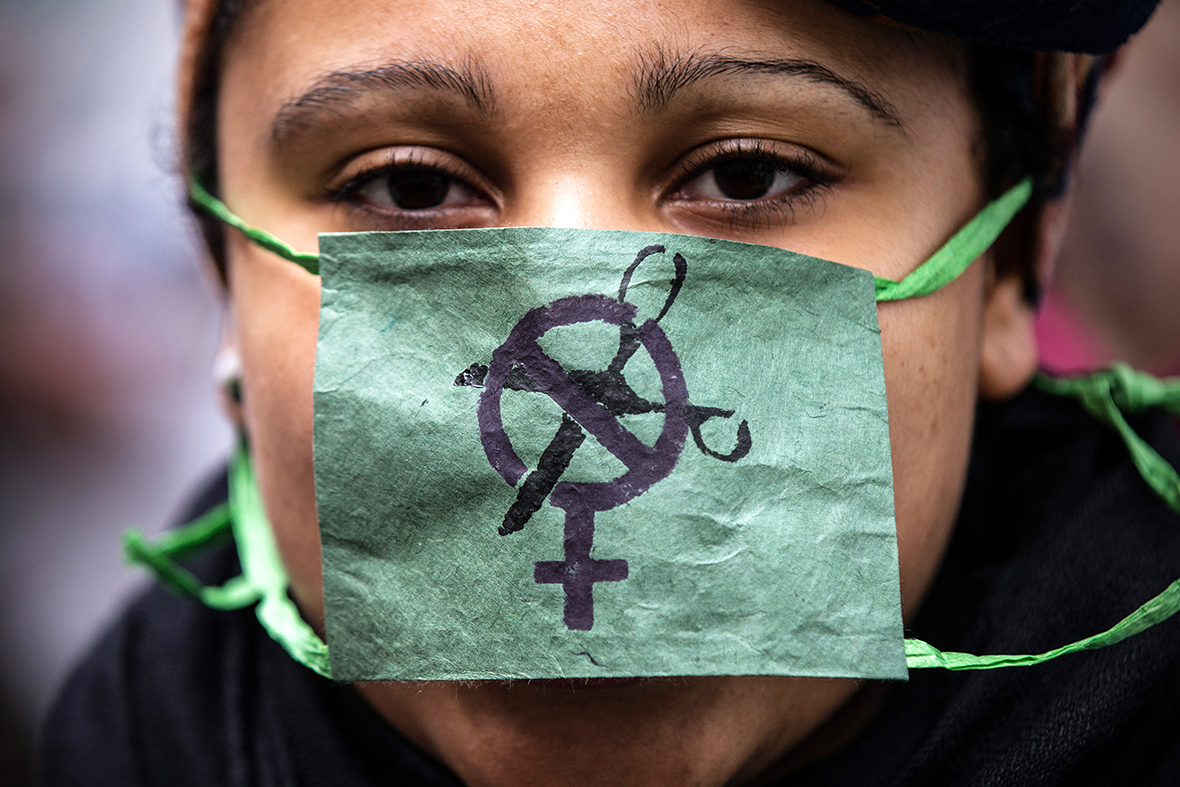 A woman wears a mock surgical mask outside the Department of Health in London